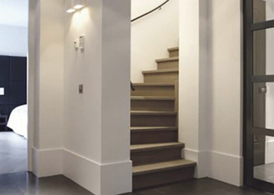 Je suis une grande fan de Karin Meijn, extraordinaire styliste d’intérieur aux Pays-Bas. Divorcée, mais toujours en business avec Piet Boon (architecte) elle a un style bien à elle et une de ses marques de fabrique est la plinthe « supersized » avec une finition en angle droit. Non seulement c’est beau et stylé, mais il y a aussi un coté très pratique car on peut cacher les prises d’électricité à l’intérieur. Ce qui donne un mur sans obstacle au-dessus de la plinthe. Regardez, les photos ci-dessous qui sont particulièrement parlantes pour appuyer mon amour des plinthes hautes avec une finition en angle droit.