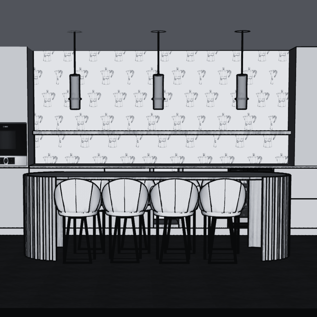 La cuisine est devenue le véritable cœur du bureau, conçue comme un espace multi- fonctionnel : déjeuner, café, brainstorming ou apéritif de fin de journée. Chaque zone a trouvé son rôle, pour offrir aux équipes un lieu modulable et inspirant. Avec une entrée digne d’un hôtel de luxe, avec une touche bien Lyonnaise (Emilie Ettori Illustrations pour le papier peint), les prospects et clients se sentent toute de suite accueilli et prise en compte.